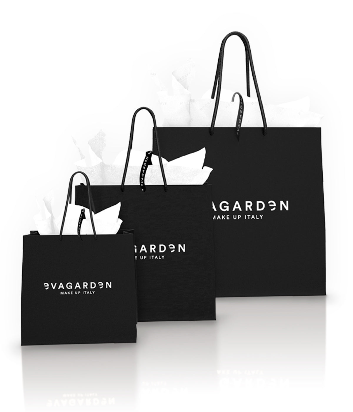 - White tissue paper covered with small Evagarden logos to wrap the products.