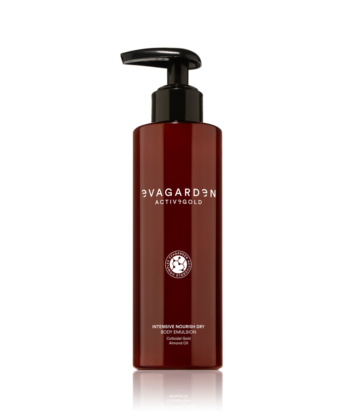EVAGARDEN ACTIVEGOLD COMPLEX: Colloidal Gold, Collagen Peptide, Elastin Peptide and Hemp Oil fused together create a unique elixir to regenerate, nourish and rejuvenate the skin.
