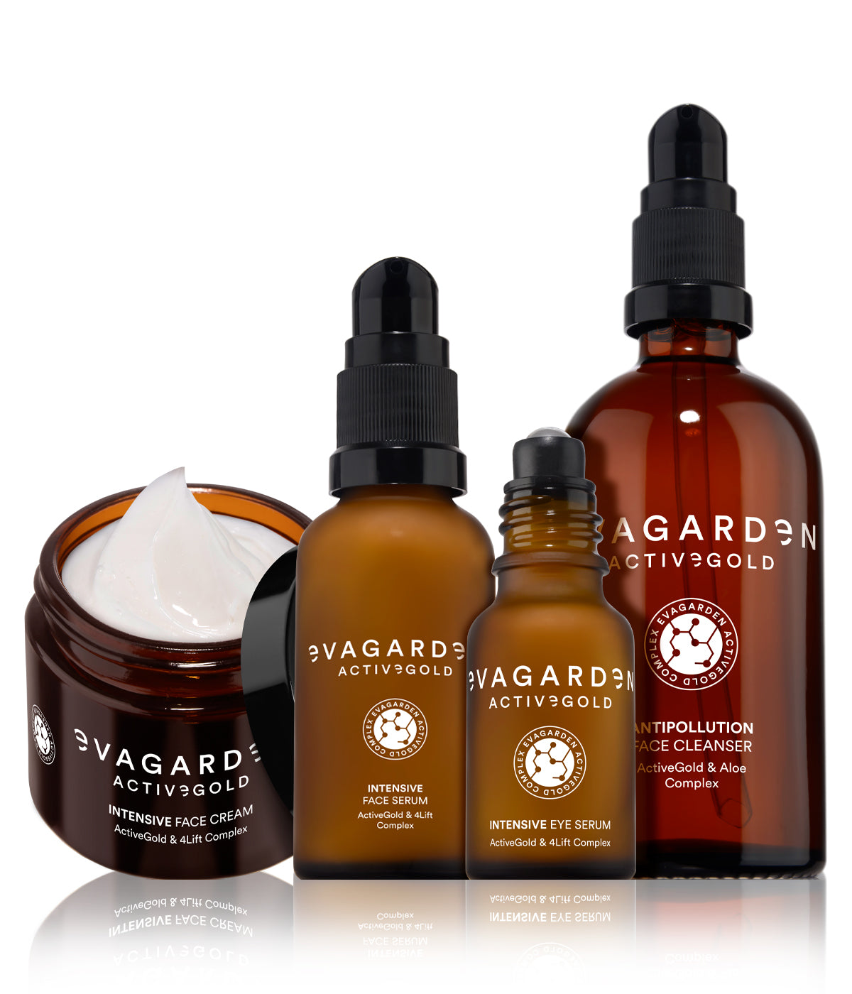 A cream, a serum, an intensive eye contour and an anti-pollution cleanser.